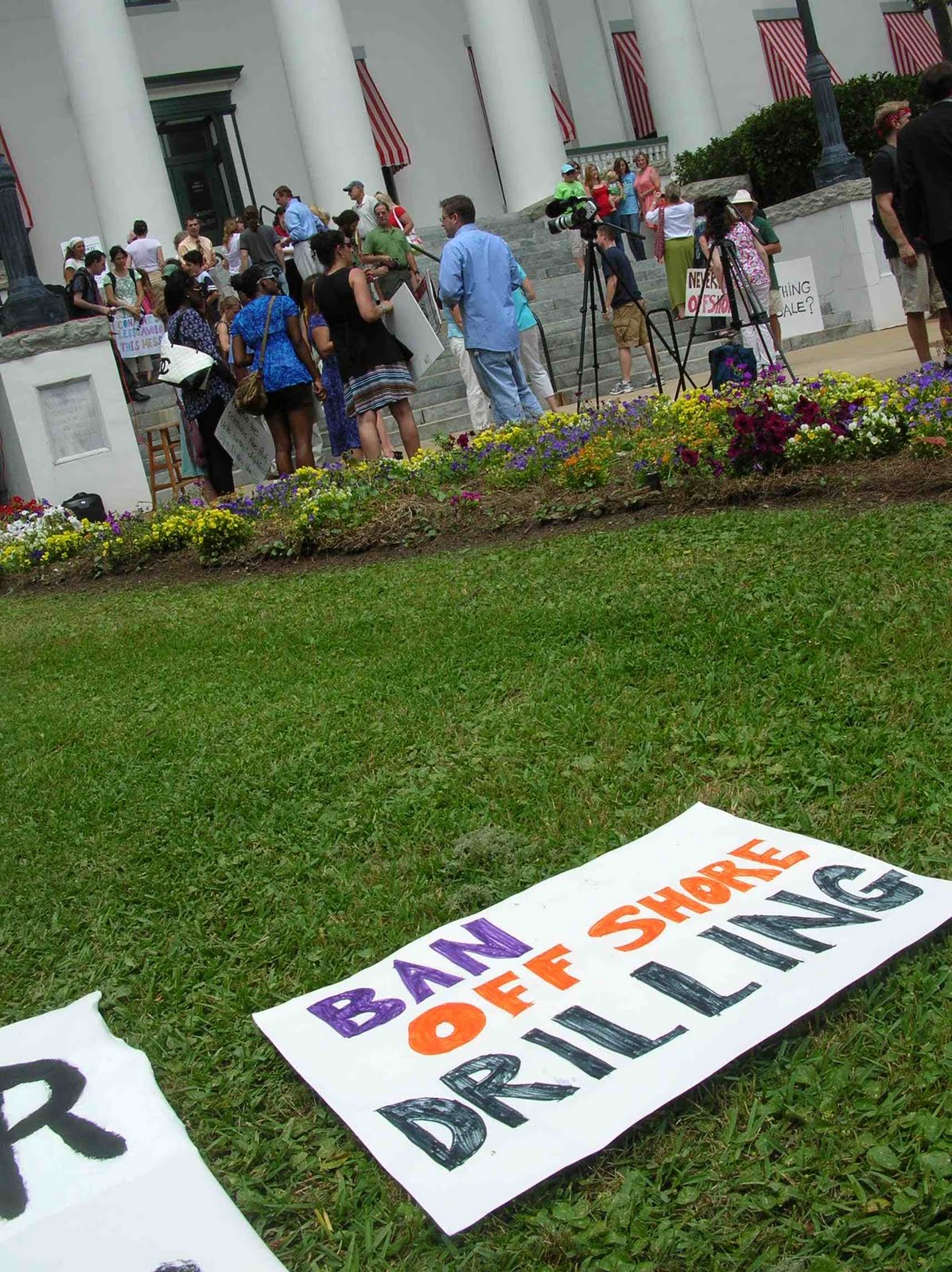 Also Monday, about 60 protesters gathered on the steps of the historic capitol to protest against drilling as an audience of about 30 people watched. Organizers called on Crist and the Legislature to hold a special session to ban drilling and provide more money for renewable energy.