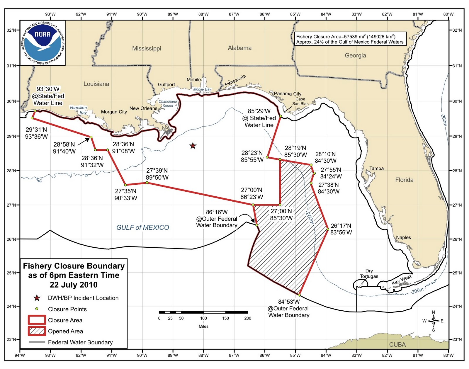 “For nearly 100 days, Floridians have suffered from this tragic event that has injured our environment, economy and quality of life,” Gov. Charlie Crist said in a statement. “The reopening of these waters is an important step in Florida’s recovery, and I encourage visitors from around the country and the world to visit our great state to enjoy our renowned fishing grounds.”
